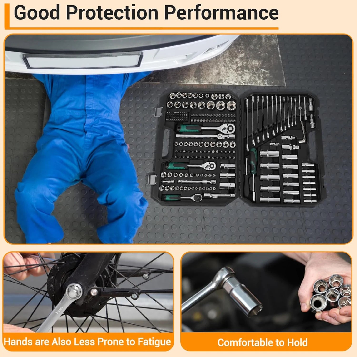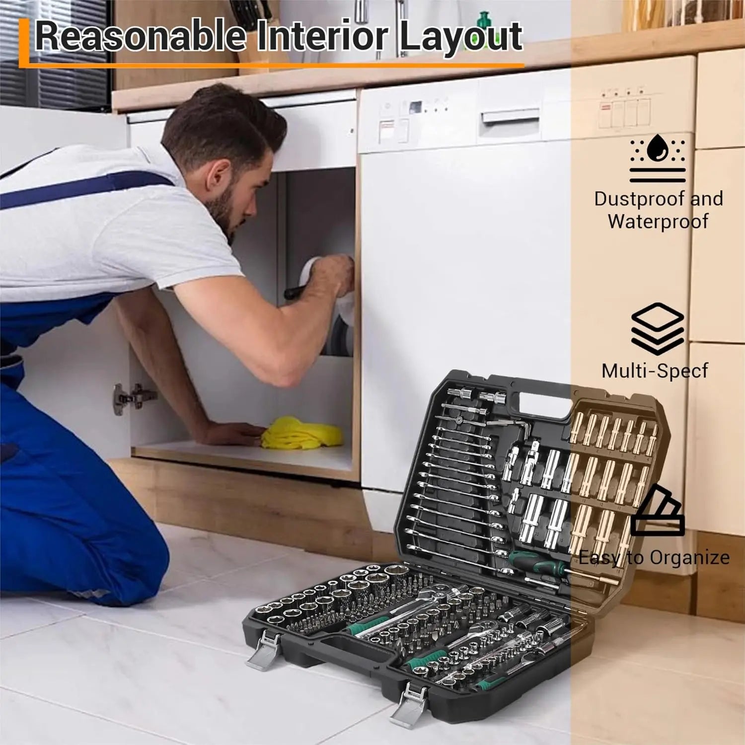 Whether you’re wrenching on your car, tightening up the shop, or helping a friend on the road, this all-in-one tool case gives you every socket, ratchet, driver bit, extension, and hand tool you need in one heavy-duty portable kit.
