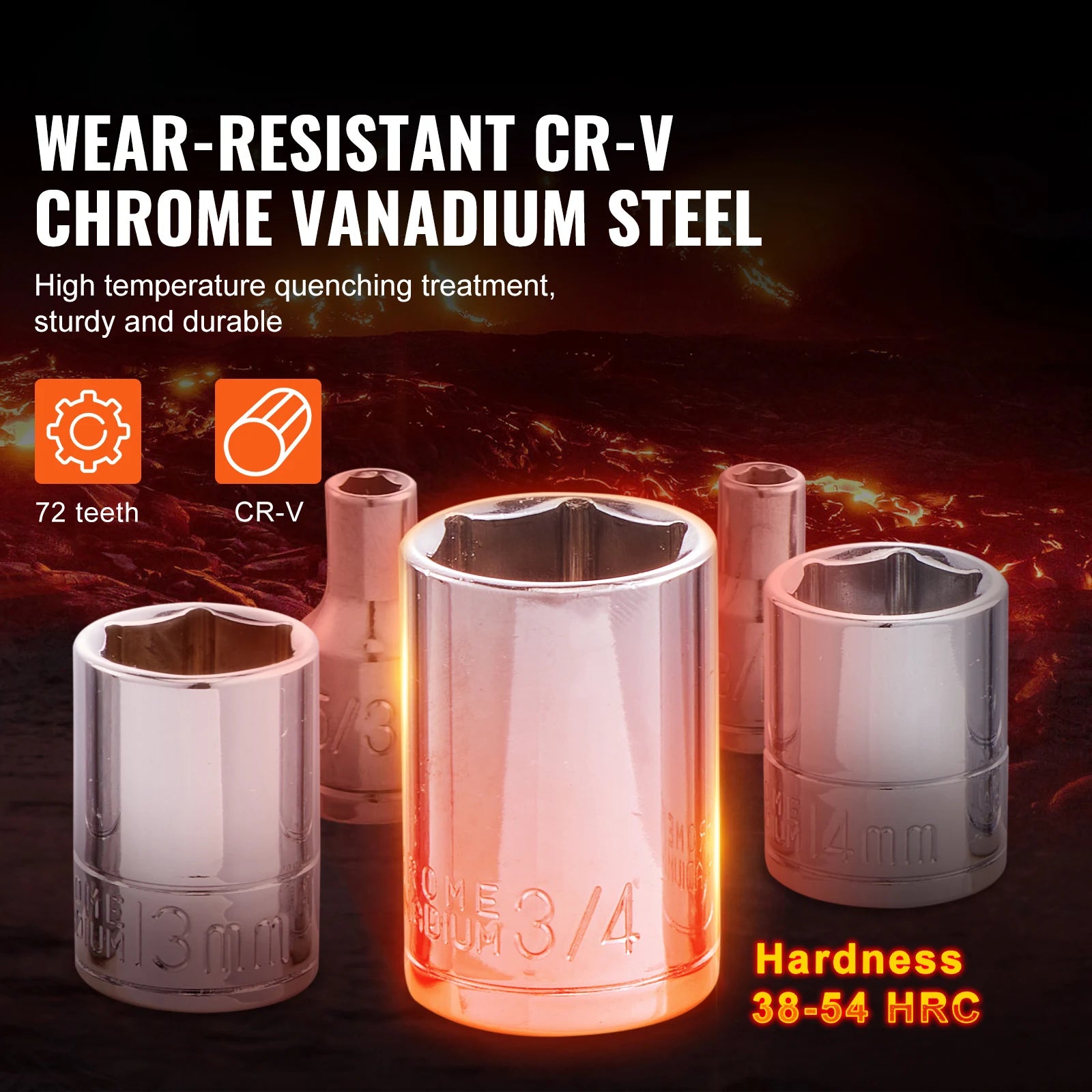With 1/4”, 3/8”, and 1/2” drive deep & standard sockets, this set handles everything from engine repairs to suspension work, brake jobs, interior mods, and precision assembly work.